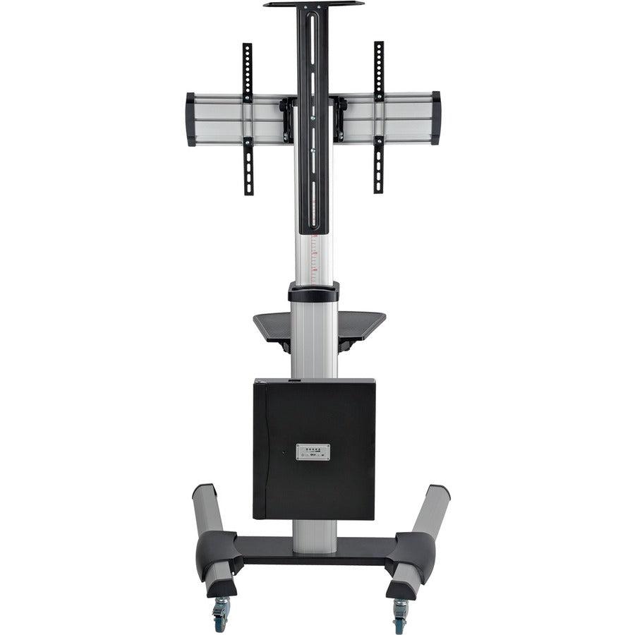 Move Your Flat-Panel Display or Interactive Whiteboard Wherever Your Audience Is This rugged Tripp Lite rolling TV stand combines a height-adjustable display mount with the convenience of a mobile cart. Mount your flat-panel television, digital whiteboard or touchscreen monitor to the all-metal unit, and then roll it safely and smoothly from room to room. The DMCS3270XPBB lets you deliver your message in corporate, education, healthcare, commercial, hospitality, retail, government and other settings requiring flexibility in a screen’s location.