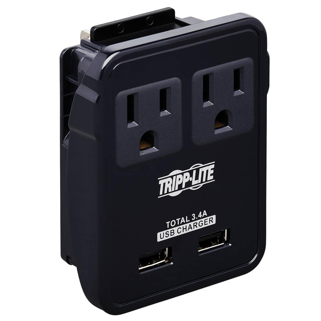 2-Outlet 2-Port Travel Charger Keeps Your Devices Powered and Ready Ideal for your home or office workstation or travel use, this Safe-IT™ power strip charger accepts a wide range of electronic devices. Plug your printer, external hard drive or other home/office electronics into two NEMA 5-15R outlets. Two USB-A ports share 3.4A for charging your smartphone, tablet and other mobile devices.