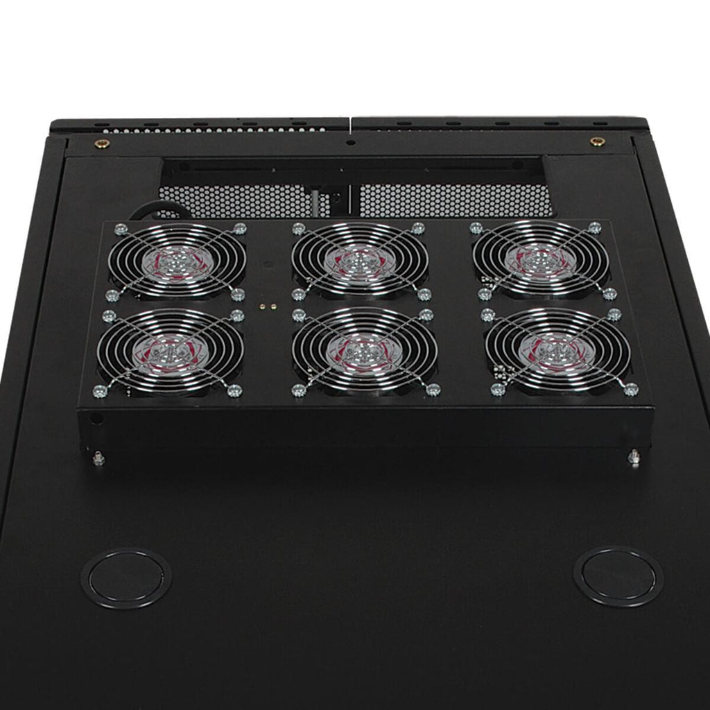 - Ideal for increasing the ventilation in all rack enclosure server cabinets - Unit features (6) 120V high performance fans mounted in a roof panel - 6-ft. cord with NEMA 5-15P input plug - Includes toolless mounting hardware