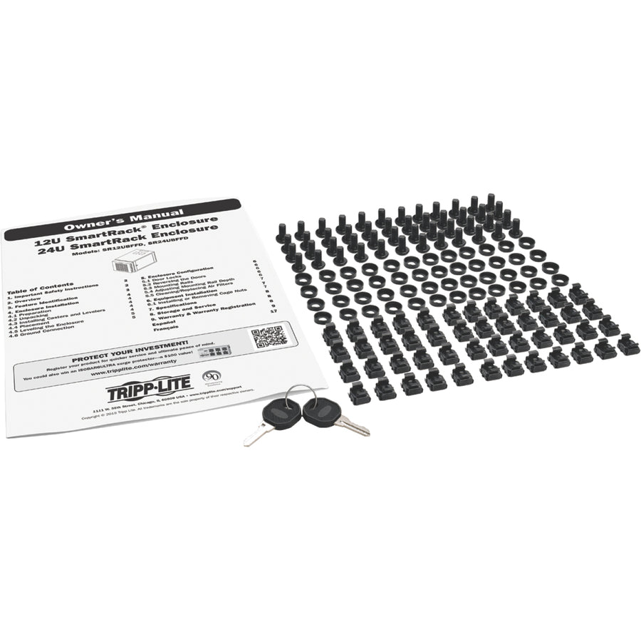 Tripp Lite SR24UBFFD. Type: Freestanding rack, Rack capacity: 24U, Maximum weight capacity: 454 kg, Key lock, International Protection (IP) code: IP54, Castor wheels. Weight: 95 kg. Product colour: Black