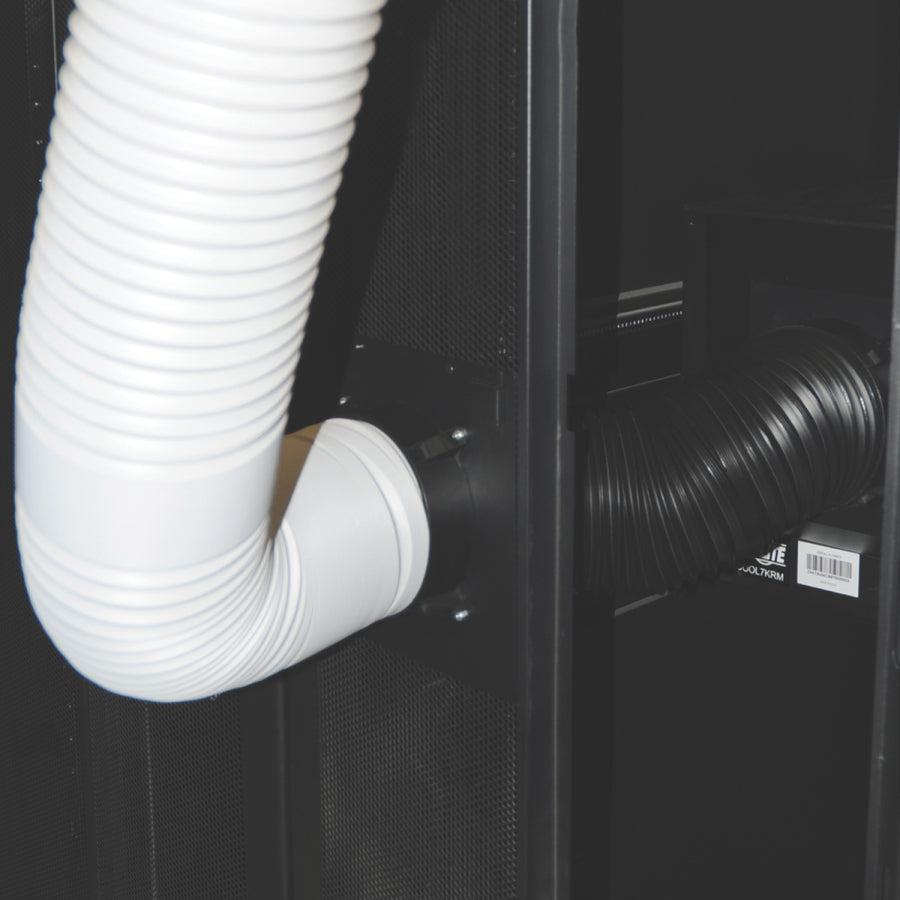 Ideal for small-space applications where heat is unlikely to disperse on its own, such as an IT closet, the SRCOOL7KDUCT installs using the included hardware. Two magnetic tube adapters attach to the rack’s vented rear door to make the kit compatible with EIA-standard rack enclosures and open frame racks that accommodate the SRCOOL7KRM.