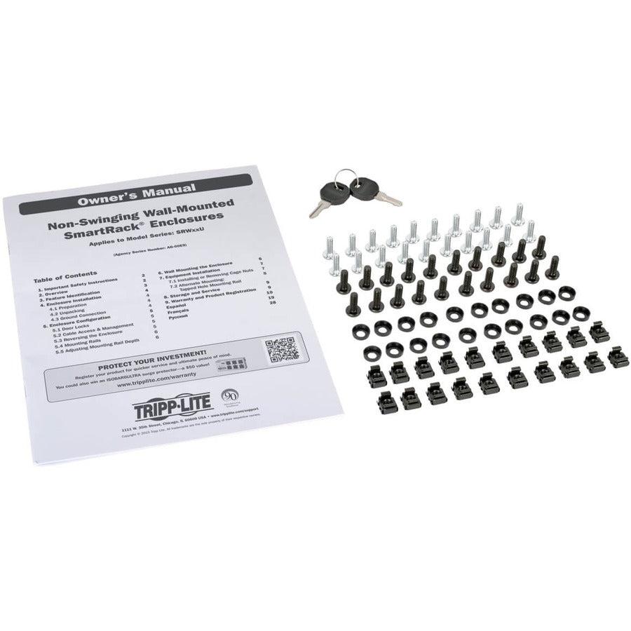 The SRW12UG comes fully assembled and ready to mount to the wall, or use Tripp Lite's optional SRCASTER rolling caster kit to make it a mobile rack. Square and 12-24 threaded mounting holes and numbered rack spaces make equipment installation easy. The vertical mounting rails adjust in 7/8-inch increments to accommodate equipment up to 16.5 inches deep, such as network switches and patch panels.