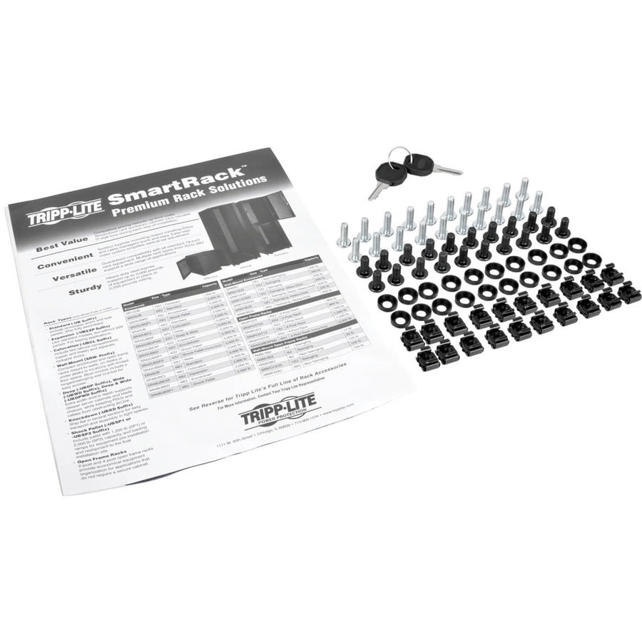 The SRW12USDPG comes fully assembled and ready to mount to the wall, or use Tripp Lite's optional SRCASTER rolling caster kit to make it a mobile rack. Square and 12-24 threaded mounting holes and numbered rack spaces make equipment installation easy. The vertical mounting rails adjust in 7/8-inch increments to accommodate equipment up to 24.5 inches deep, such as network switches, UPS systems and related battery packs and cabling.