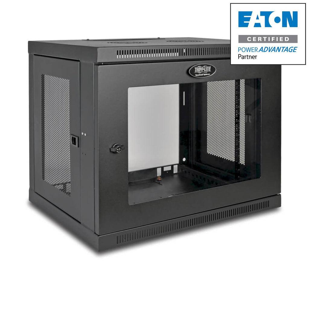 The SRW9UG SmartRack 9U Low-Profile Switch-Depth Wall-Mount Rack Enclosure Cabinet is designed to house EIA-standard 19-inch rack equipment in network wiring closets, retail locations, classrooms, back offices and other areas with limited floor space where you need equipment to be secure, organized and out of the way. Constructed from heavy-duty steel with a durable black powder-coated finish, the cabinet has a maximum load capacity of 200 lbs (90.7 kgs).