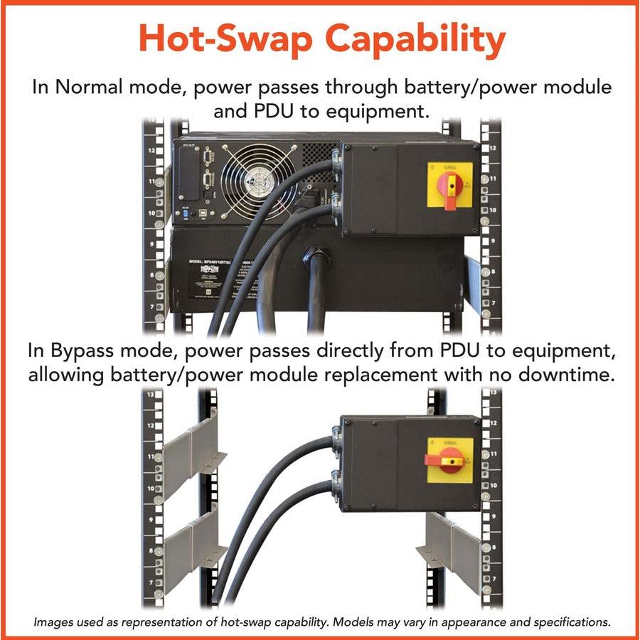Tripp Lite SU10KRT3UHV 10,000VA / 10kVA / 9000 watt online, double-conversion UPS system offers complete power protection for critical network applications. This system delivers online, double-conversion UPS protection with zero transfer time, suitable for advanced networking applications. Fault-tolerant auto-bypass prevents unexpected service interruptions during UPS overload or internal fault conditions. Included detachable PDU with manual bypass switch enables hot-swappable replacement of entire UPS power module with no interruption to connected equipment. Enhanced availability, fault tolerance and simple hot-swap replacement options make this UPS ideal for advanced networking applications in data centers, computer rooms, network closets and rugged industrial locations.