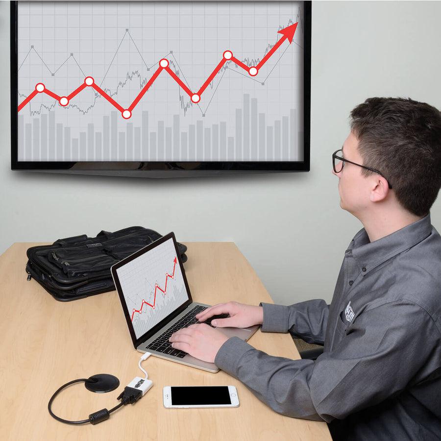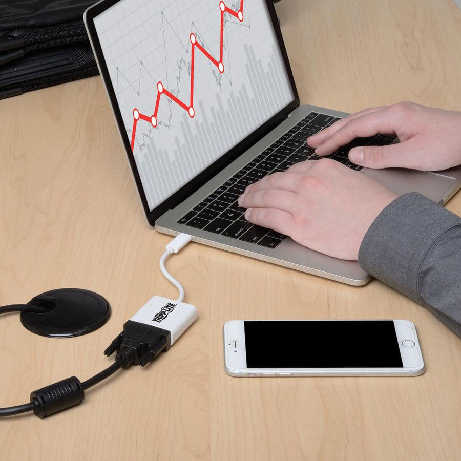 The U444-06N-DVI-AM USB 3.1 Gen 1 USB-C to DVI Adapter (M/F) helps you transmit video from your tablet, laptop, Chromebook, MacBook, smartphone or PC to a DVI-enabled television, monitor or projector. It’s an ideal tool for giving video presentations in conference rooms and classrooms, editing multiple documents on a larger screen or streaming video for digital signage in crystal-clear 1080p.
