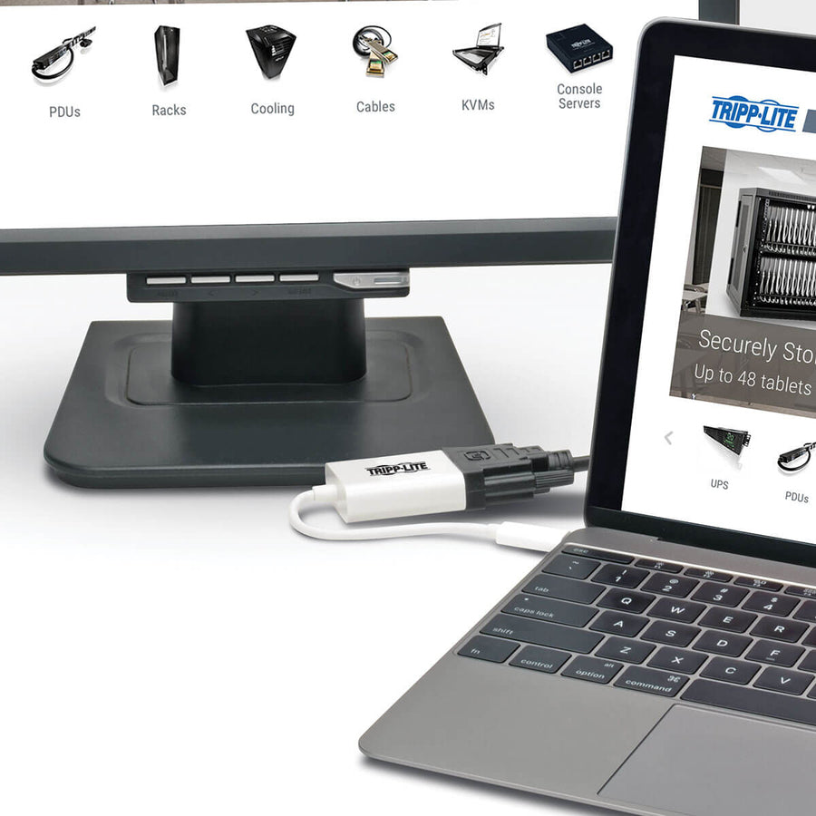 The plug-and-play U444-06N-DVI-AM requires no software, drivers or external power. Connect the reversible USB-C plug to your source device’s USB-C or Thunderbolt 3 port. The fumble-free USB-C plug connects in either direction to ensure fast, easy connection every time. Then, connect the DVI port to your display using a DVI cable (sold separately).