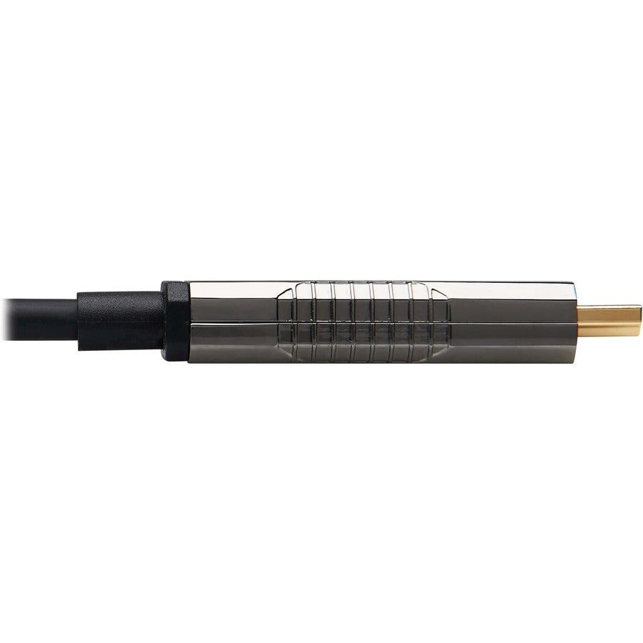 4K USB-C to HDMI Cable Connects Home Theater, Office and Digital Signage Components This USB Type-C to HDMI fiber optic cable (M/M) securely connects the USB-C or Thunderbolt 3 port on your MacBook, Windows laptop or other compatible device to an HDTV, monitor or projector with HDMI input. Because the cable uses optical fiber, it can transmit audio/video signals longer distances with no latency or loss. It also is immune to EMI/RFI line noise that can interfere with your audio/video signal and disrupt the performance of your connected equipment.