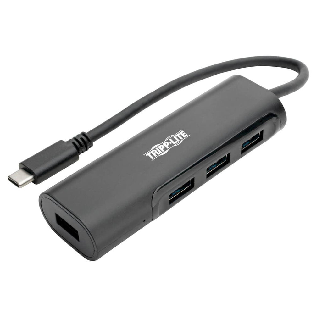 Tripp Lite U460-004-4AB 4-Port USB-C Hub, USB-C to 4x USB-A Ports, USB 3.0, Black. Host interface: USB 3.2 Gen 2 (3.1 Gen 2) Type-C, Hub interfaces: USB 3.2 Gen 1 (3.1 Gen 1) Type-A. Data transfer rate: 5000 Mbit/s, Product colour: Black, LED indicators: Power. Power consumption (typical): 0.7 W, Output voltage: 5 V, Output current: 1.5 A. Package width: 76.2 mm, Package depth: 144.8 mm, Package height: 26.9 mm. Master (outer) case width: 157.5 mm, Master (outer) case length: 294.6 mm, Master (outer) case height: 96.5 mm
