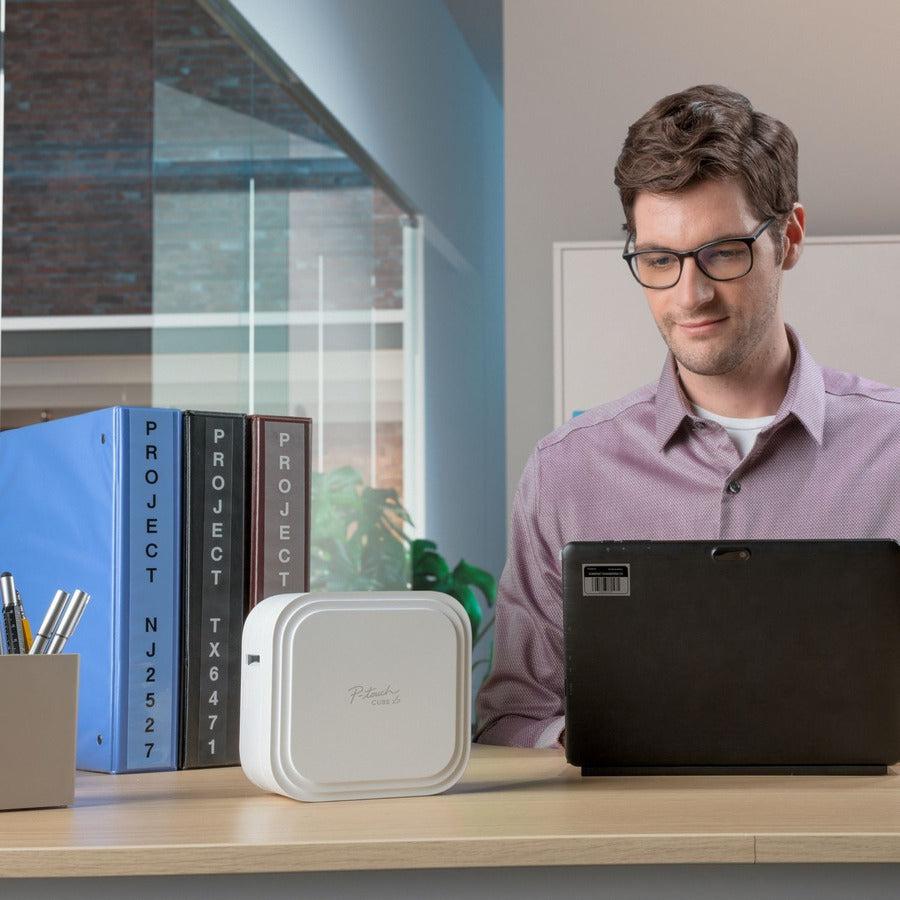 - 8. For use with a wide variety of Brother P-touch label makers. P-touch TZe-M65 White Print on Matte Clear Label Tape is compatible with Brother P-touch Label Makers including the P-touch CUBE XP (PT-P910BT), PT-3600, PT-530, PT-550, PT-9200DX, PT-9200PC, PT-9400, PT-9500PC, PT-9600, PT-9700PC, PT-9800PCN, PT-D800W, PT-E800W, PT-P900, PT-P900W, PT-P950NW.