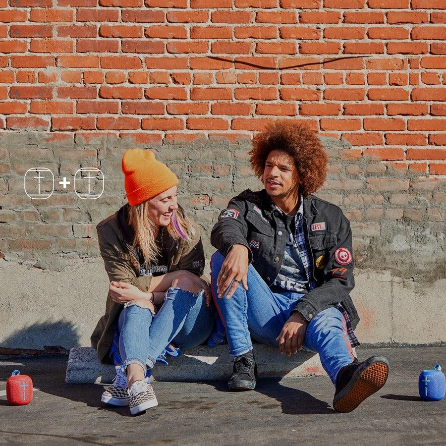 When you just gotta crank it, one push of a button wirelessly pairs two WONDERBOOM 2 speakers for even more "pow!" So grab a friend to connect, party louder, or immerse yourself in beautiful true wireless stereo sound - anywhere. Talk about squad goals. It's so friendly, it'll even connect with WONDERBOOM™ to double the sound!