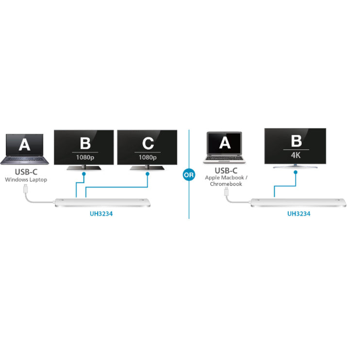 ATEN USB-C Multiport Dock with Power Pass-Through UH3234
