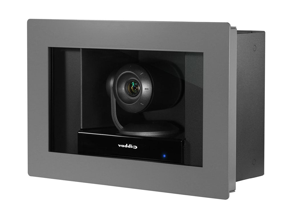 Combines a HD PTZ camera with Vaddio's robust OneLINK HDMI for clean camera extension. Enclosed within its mounting case, the RoboSHOT IW (In-Wall) HDBT Recessed HD Camera is ideal for capturing conversations or video conferencing in room settings where interior design is important.