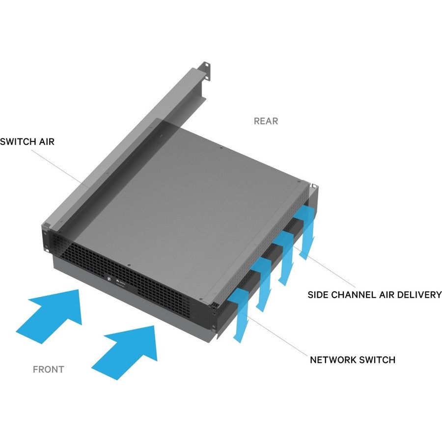 Network switches, load balancers, and routers typically sit at the top and back portion of the rack. This placement makes it difficult for cold air to travel from the front of the rack to the air intakes of the network switch equipment, increasing chances of failure over time. SwitchAir helps prevent failure by channeling cool air from the front of the rack to the air intakes regardless of where the equipment is mounted.