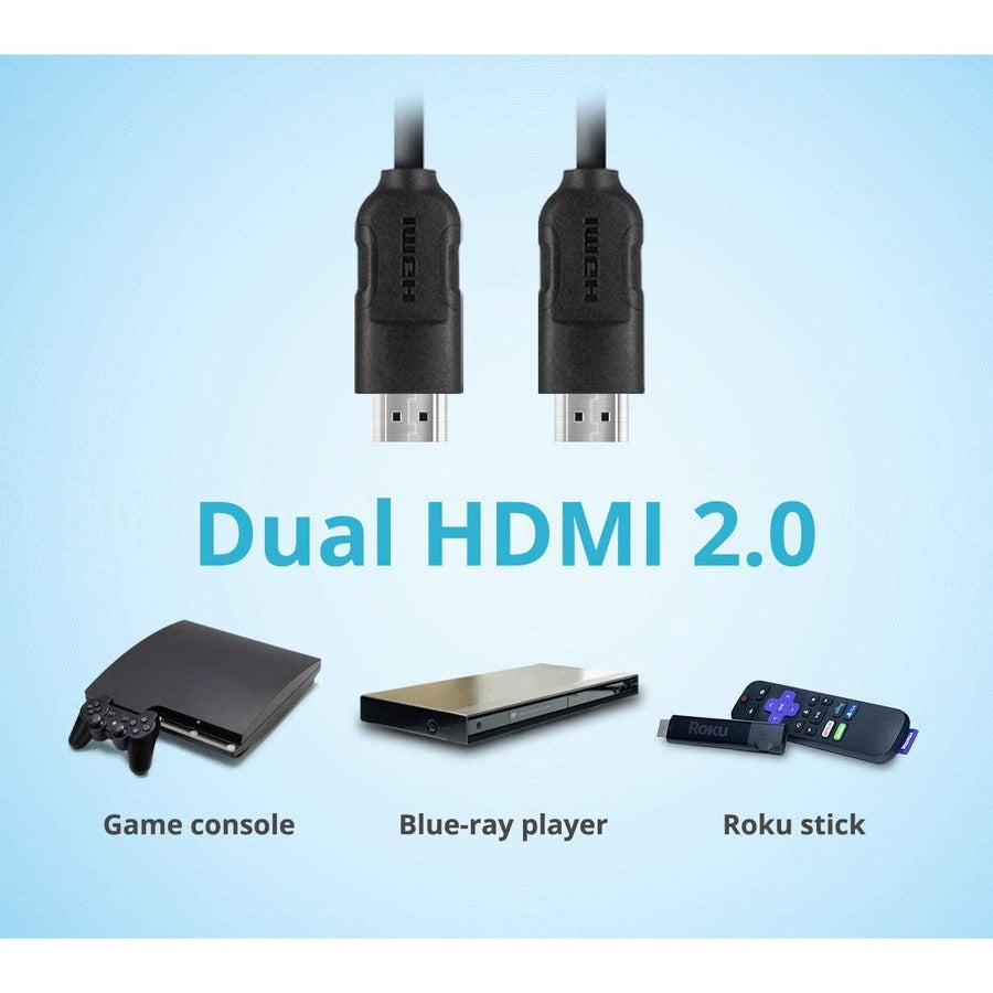 Dual HDMI 2.0b Supporting 4K/HDR/HLG It comes with dual HDMI 2.0b / HDCP 2.2 ports, ensuring your access to original 4K quality content with HDR/HLG supported at a 60Hz frame rate from external devices (e.g. Roku stick, 4K Blu-ray player), producing the brightest whites, deepest blacks, and showing more picture detail.