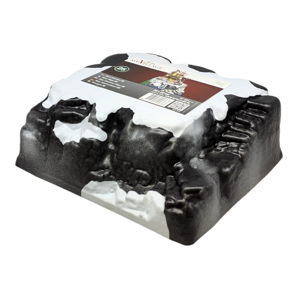 This village landscape captures the essence of the holiday spirit and the serene beauty of snow-covered hills. It makes for a perfect addition to your seasonal decor or a thoughtful gift for collectors. Traditionally, village scenes like this one are popular in holiday decorating, often modeled after classic Christmas villages known for their cozy and inviting charm. Bring a piece of this timeless magic into your home with this captivating and intricately designed miniature landscape.