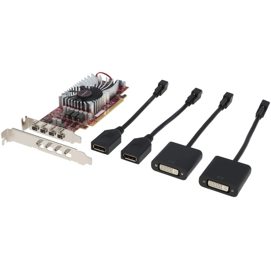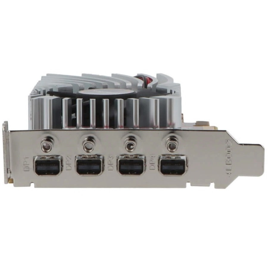 The RX 550 4M fits a full height or small form factor system an featuring 4 mini DisplayPort ports in a single slot.