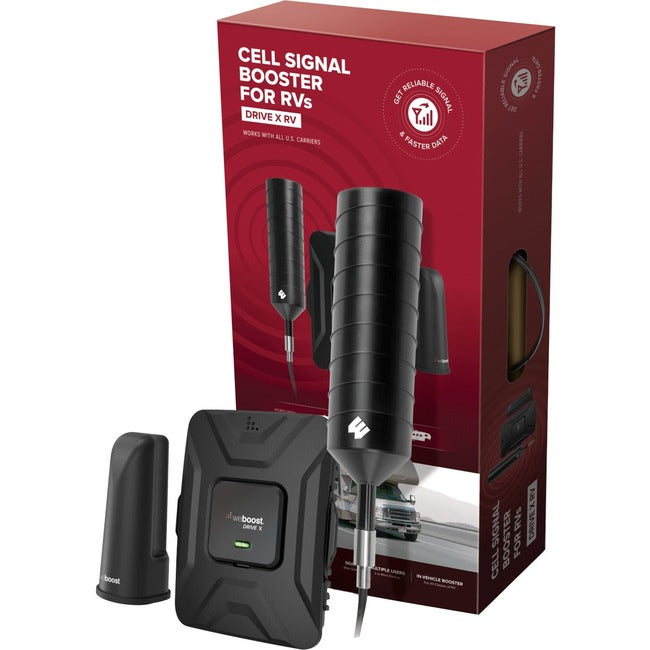 The Drive X RV is a versatile, multi-user, in-vehicle cell signal booster-designed for use with all RV classes and towable trailers. Backed by up to 50 dB max gain, the Drive X RV delivers the strongest cell signal possible on all available network speeds. The enhanced outside antenna's modular design allows for custom setup and optimal positioning for signal reception. Whether parked or on the road, Drive X RV users experience fewer dropped calls, better voice quality, uninterrupted texts, faster data speeds, better streaming, and improved hotspot capability.