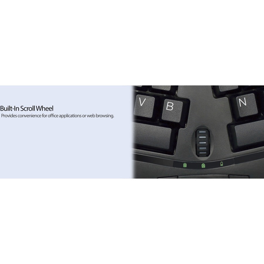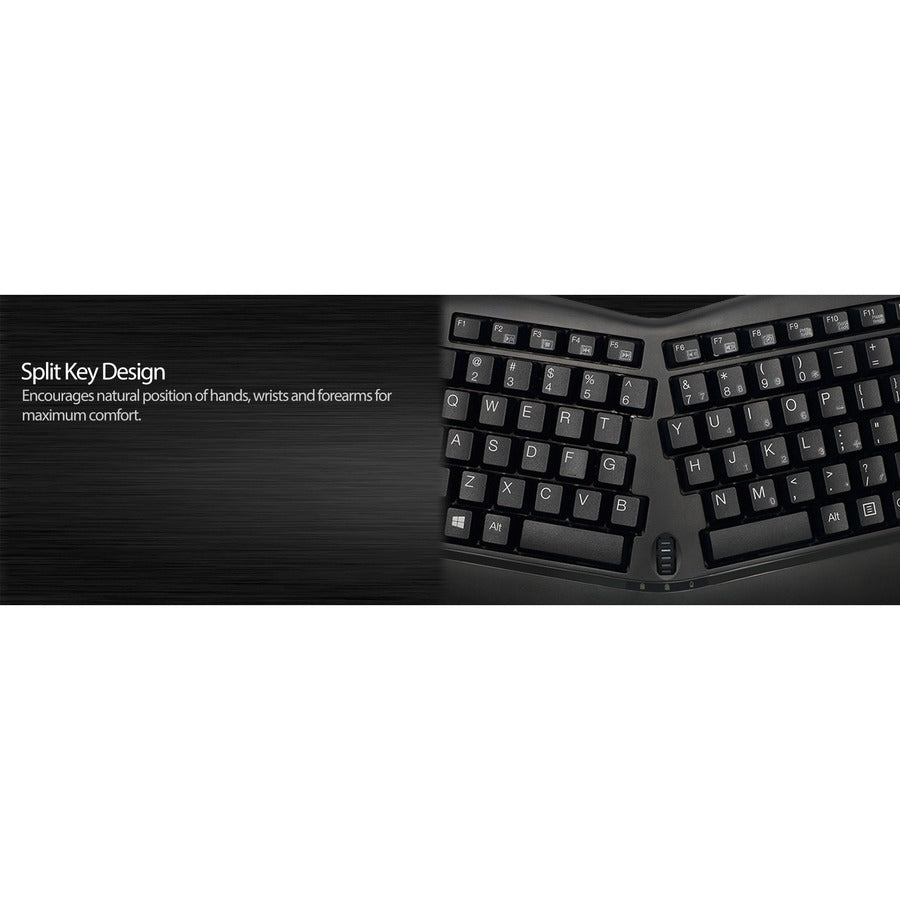 - Split Key Design - Encourages natural position of hands, wrists and forearms for maximum comfort.